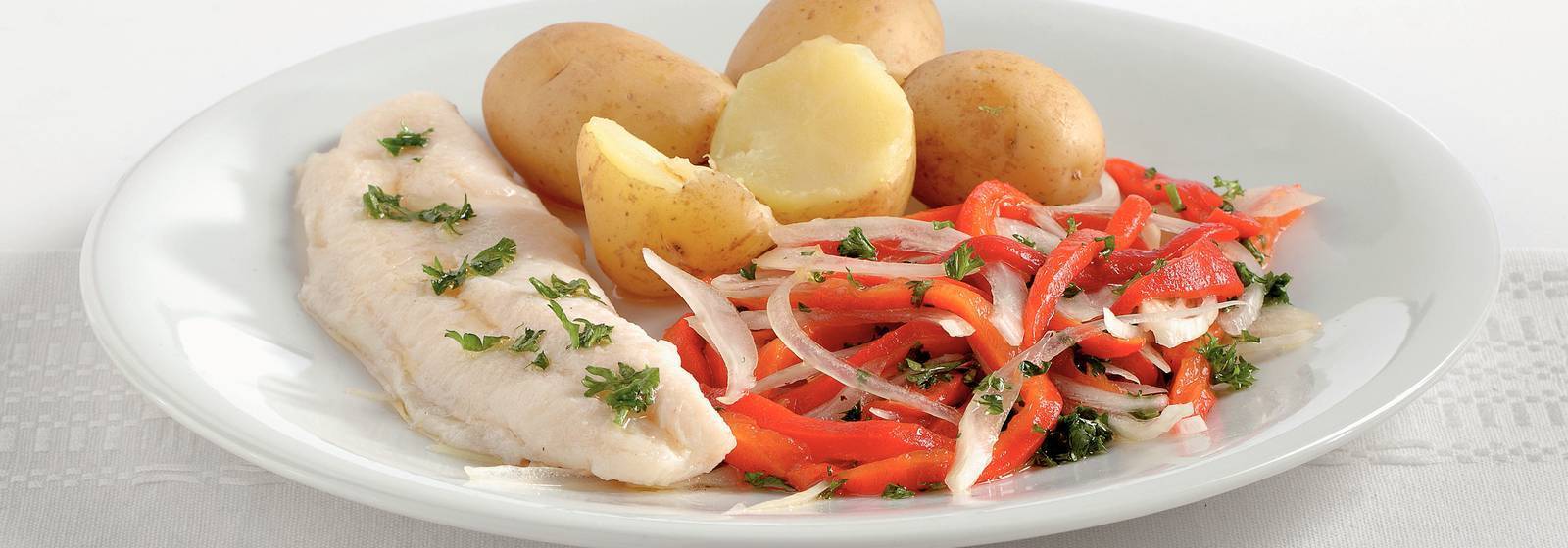 Lezzetli bir tarif. Ana yemek aşağıdaki içerikleri içerir: balık, patates (yeni hasat (2 kg'lık bir çanta)), közlenmiş biber (465 gr), soğan, taze maydanoz (30 gr'lık çanta), zeytinyağı, sirke, balık suyu ve pangasius fileto.