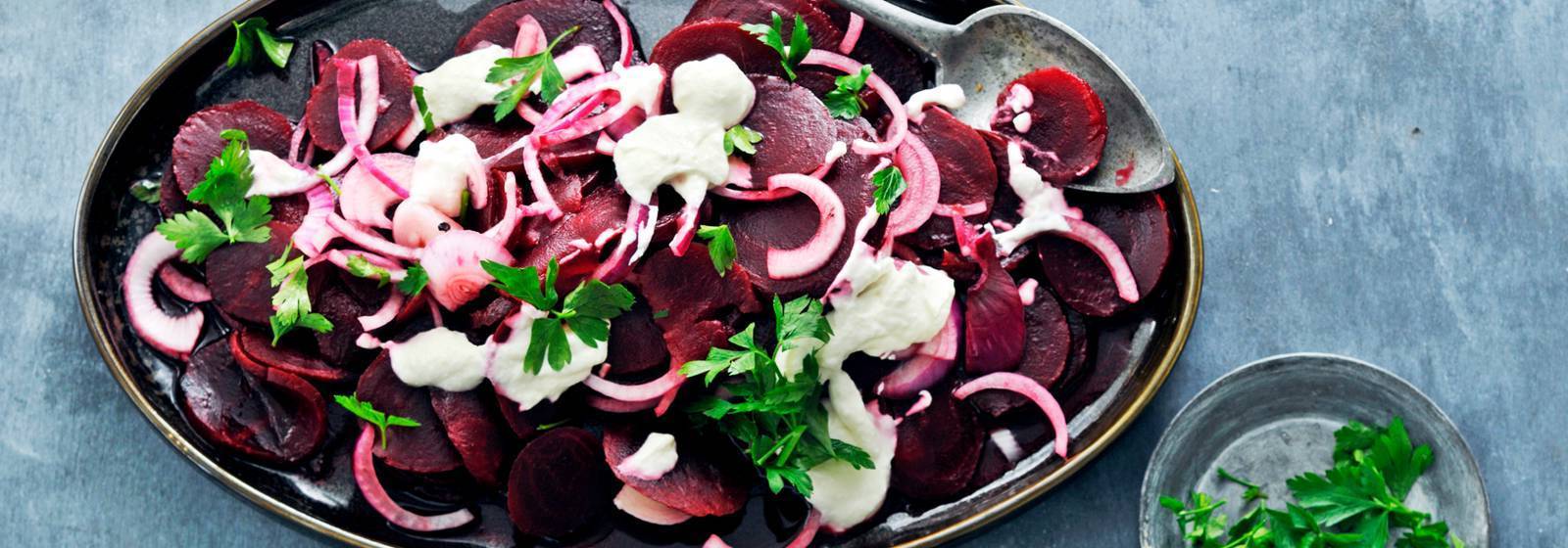 Yunan yoğurt ve yaban turpu ile pancar salatası