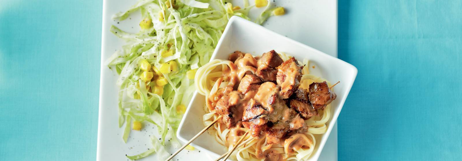 Baharatlı domuz satay ve lahana salatası