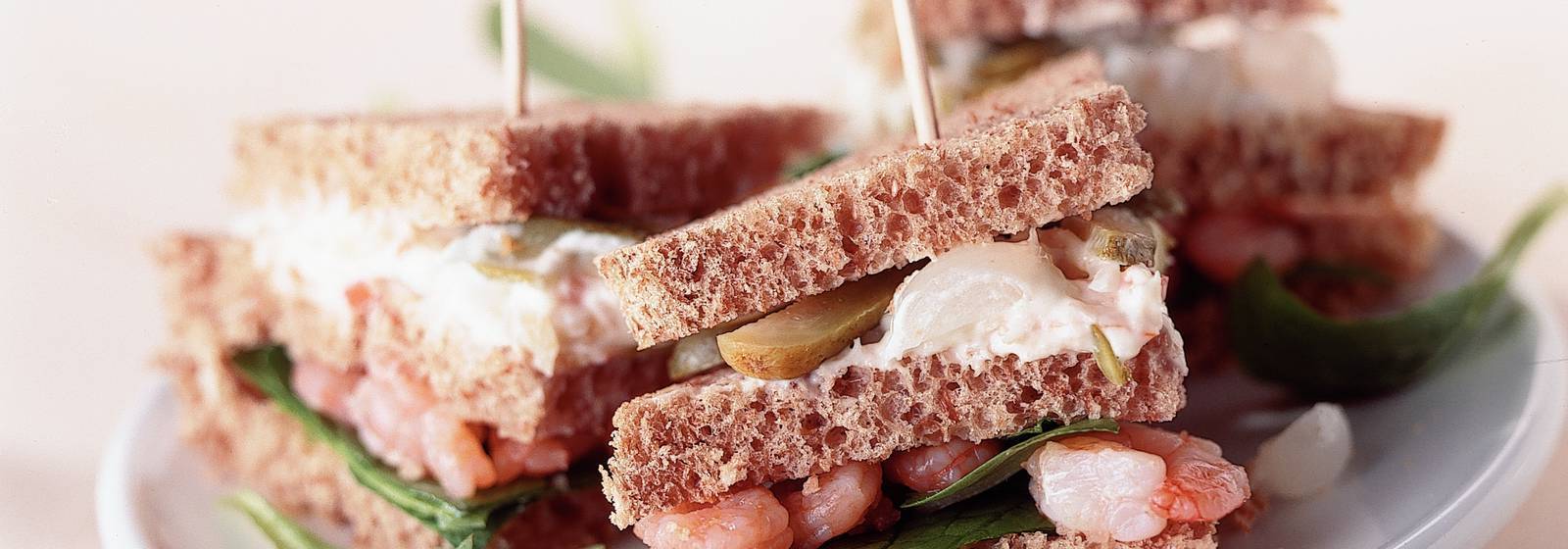 Bir dilim ekmekle karidesleri örtün.