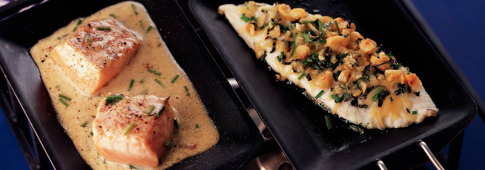 Bir gurme tavada bir topuz tereyağını ısıtın ve iki küp somon haşlayın. Bol miktarda krema ekleyin ve somonun içinde gülünceye kadar 2-3 dakika pişirin.
