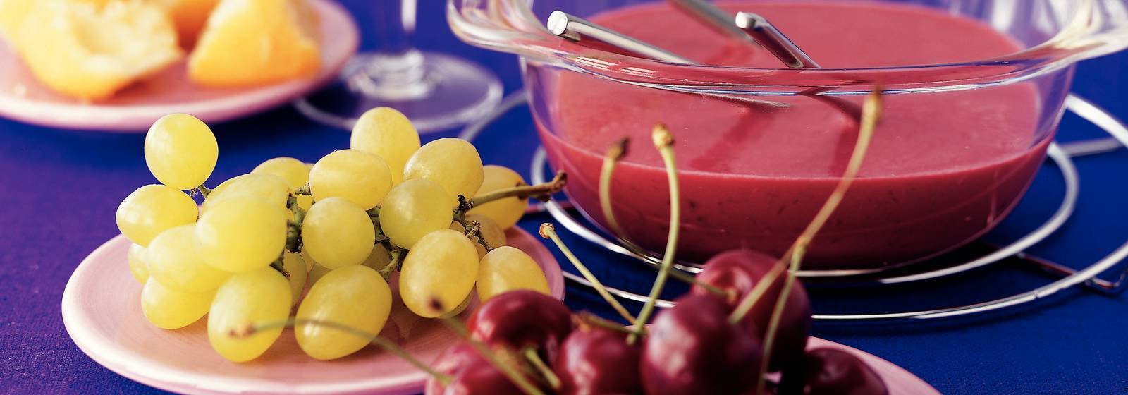 Daldırma: - çilekler (taçla) - kirazlar (sapta) - muz parçaları (limon suyu ile serpilir) - elma veya armut dilimleri (limon suyu ile serpilir) - çekirdeksiz üzümler - uzun parmak parçaları - tereyağı maşası veya hindistan cevizi kurabiyeleri gibi kırılgan bisküvi - küp kek veya kek - şeker ekmeği veya kuş üzümü ekmeği küpleri.