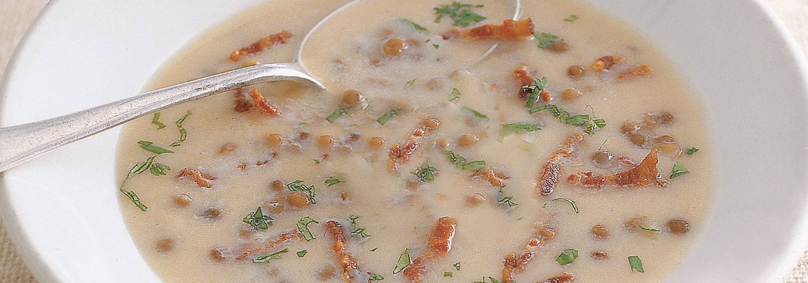 Mercimek ve pastırma ile kereviz çorbası