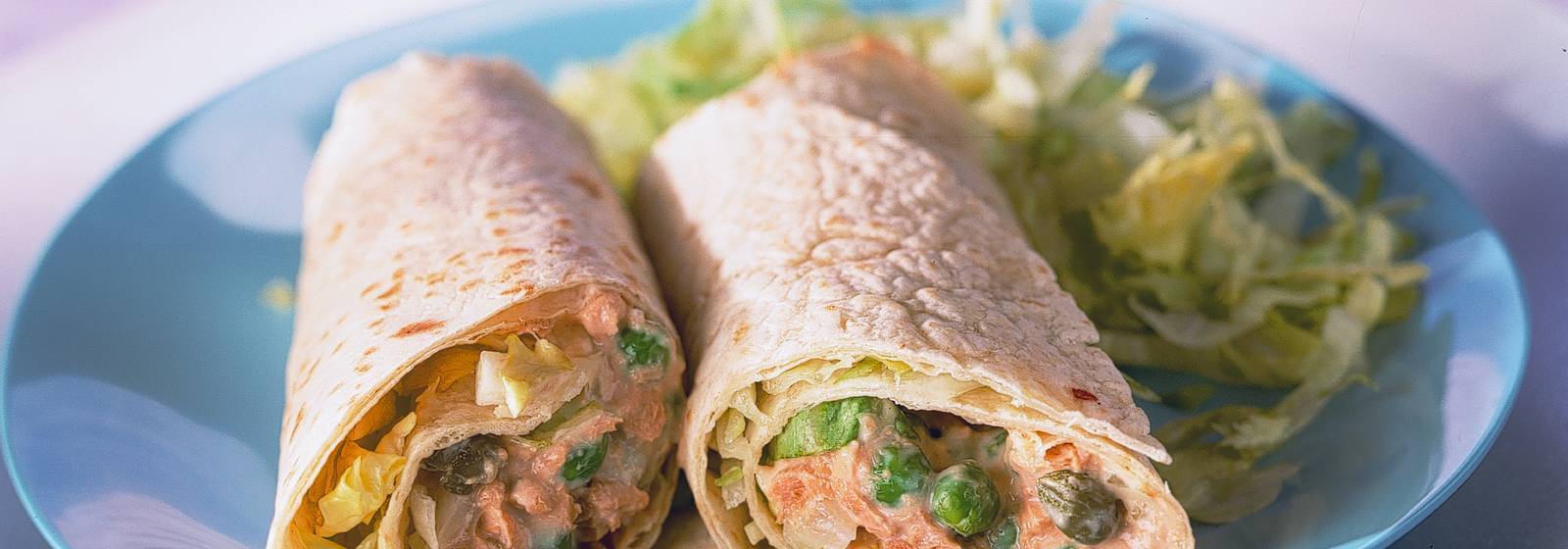 Lezzetli bir tarif. Ana yemek şu içerikleri içerir: balık, bahçe bezelye (bir 450 g dondurulmuş), kırmızı somon (213 g), sarımsak, mayonez, kapari (100 g), marul, wraptortillas (280 g paket) ve salata sosu doğal (bir şişe 450 ml).