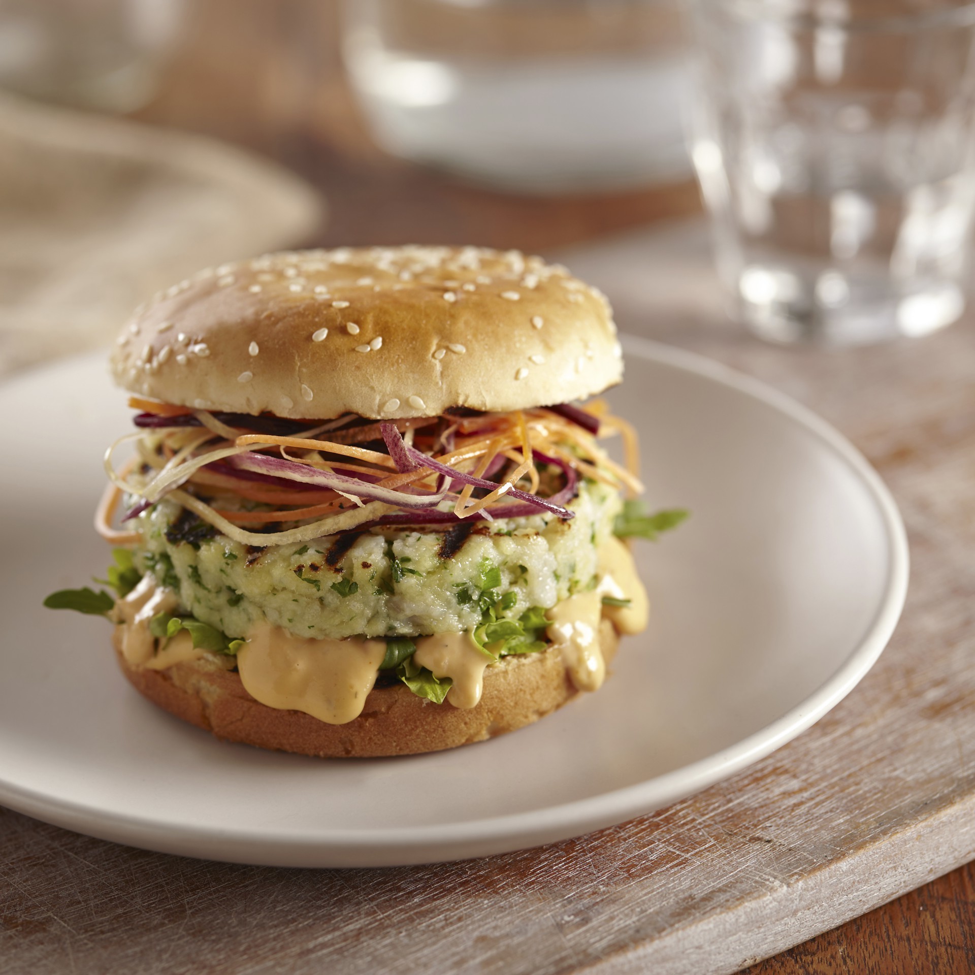 Üzerindeki Tıknaz Burger Sosunu bölün, balık burgerini üstüne yerleştirin ve havuçlu soğan salatası ile bitirin.