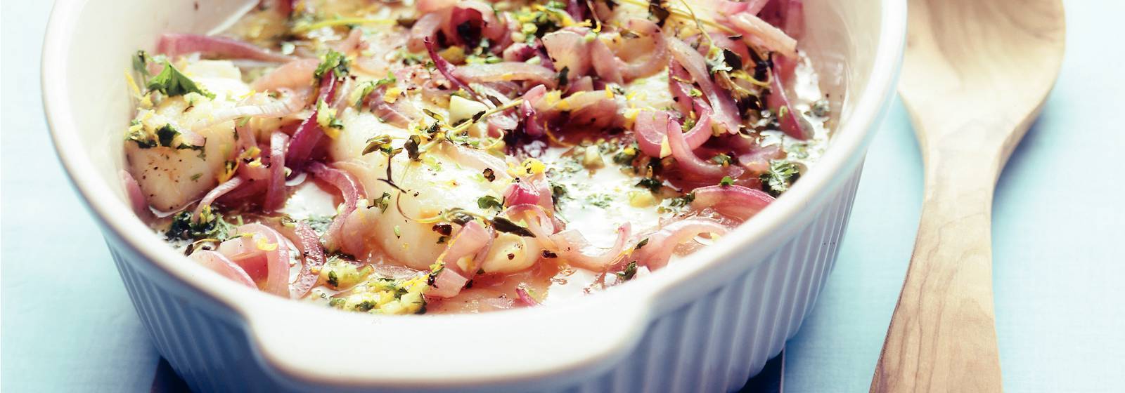 Beyaz şarap soslu morina ile fırın yemek.